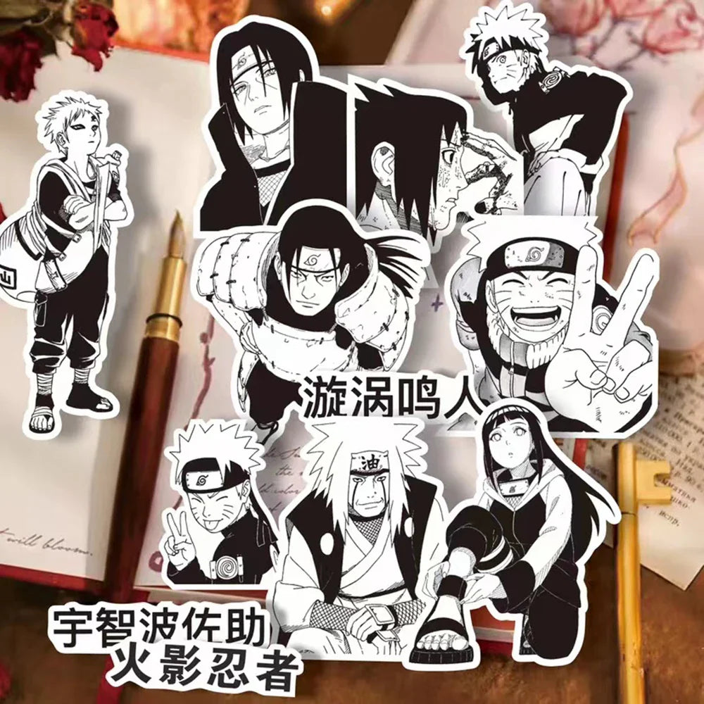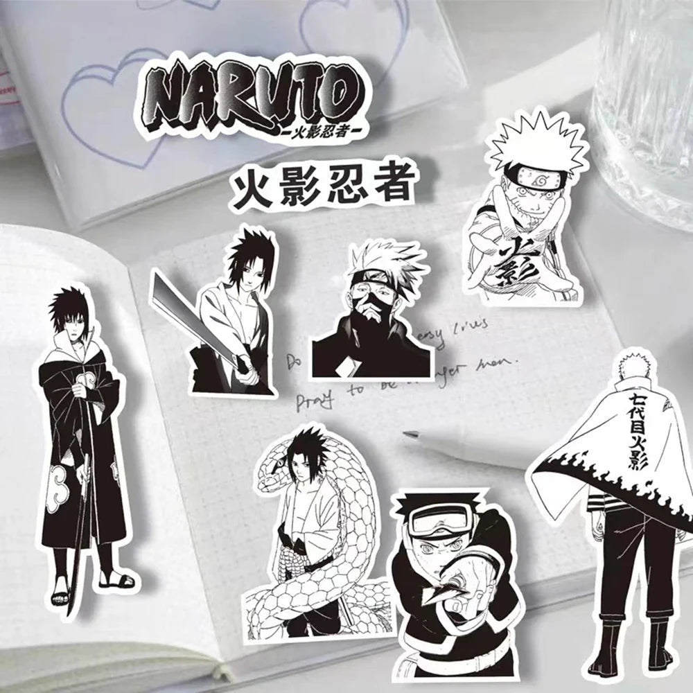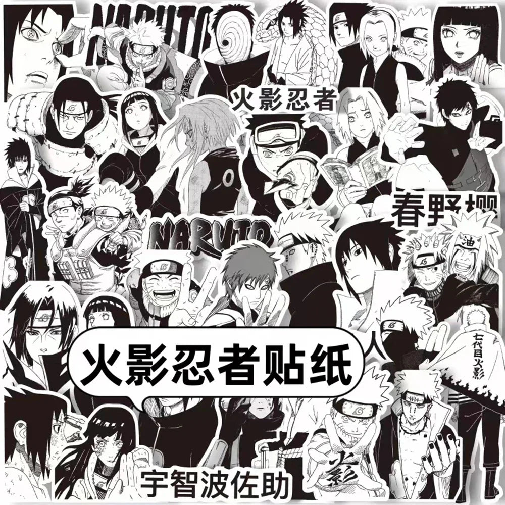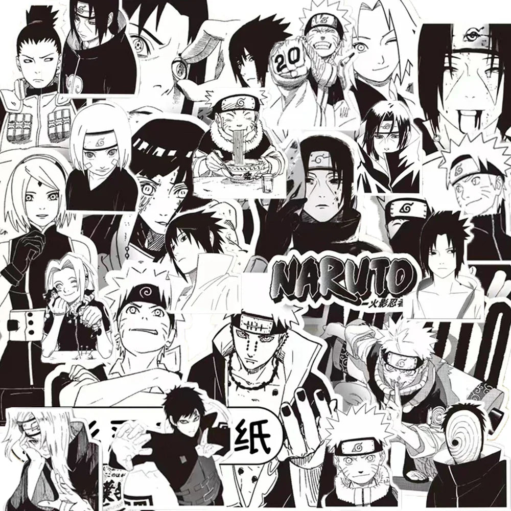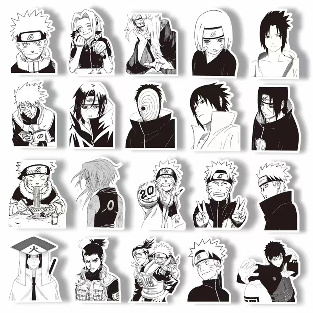 Customize your world with these stylish black and white Naruto cartoon stickers! Perfect for decorating phones, laptops, skateboards, notebooks, and more — great for kids, teens, and anime lovers.