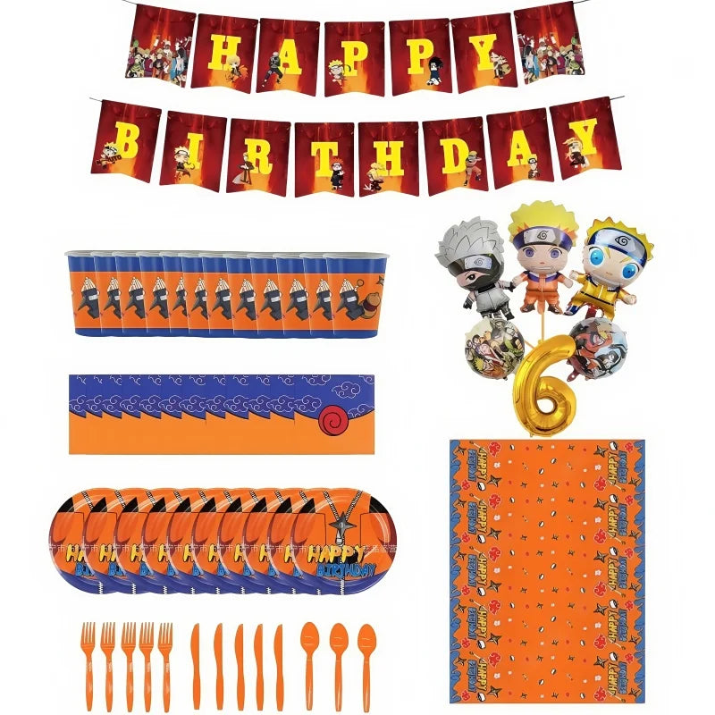 Create an unforgettable Naruto-themed celebration with this all-in-one DIY party set! Perfect for boys’ birthdays, this combination kit includes everything you need—from plates and balloons to a stunning backdrop—to bring the ninja world to life.