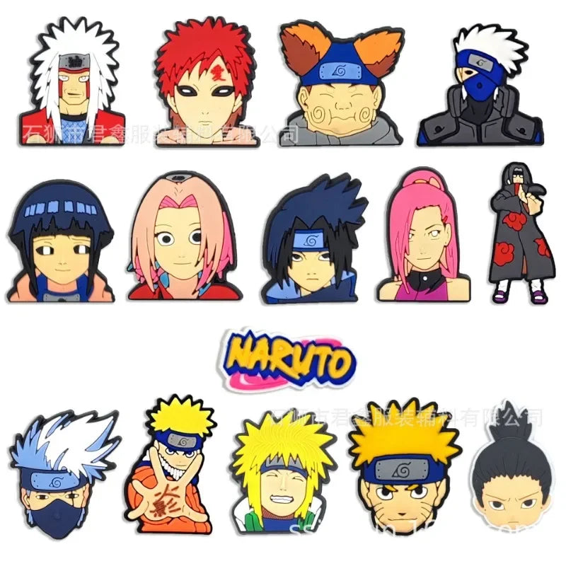 Style your clogs with your favorite Naruto characters using these fun anime-themed buckle charms! Featuring Sasuke, Sakura, Shikamaru, Jiraiya, Hinata, and more, they’re perfect for customizing garden shoes or slippers.