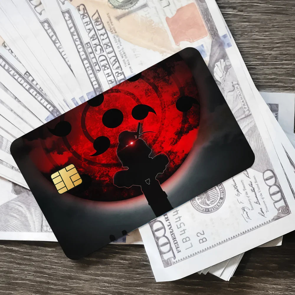 Personalize your cards with this set of 4 waterproof Uchiha Itachi-themed credit card stickers. Perfect for anime fans who want to add a cool, Akatsuki-inspired touch to their bank, bus, or debit cards!
